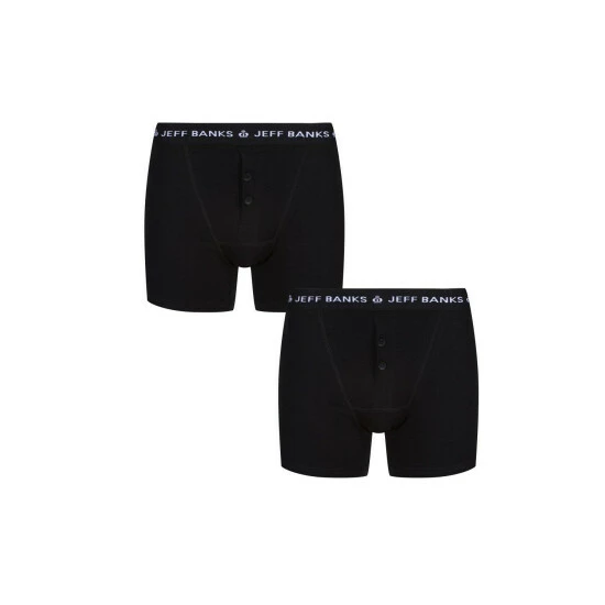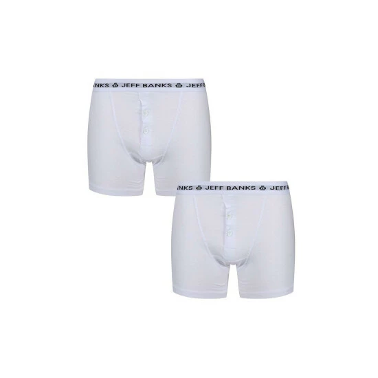 95% Cotton 5% Elastane. Flat overlock seams, right handed fly front secured by two Jeff Banks logo buttons, stylist repeat logo jacquard elasticated waistbands. Machine washable at 40°.