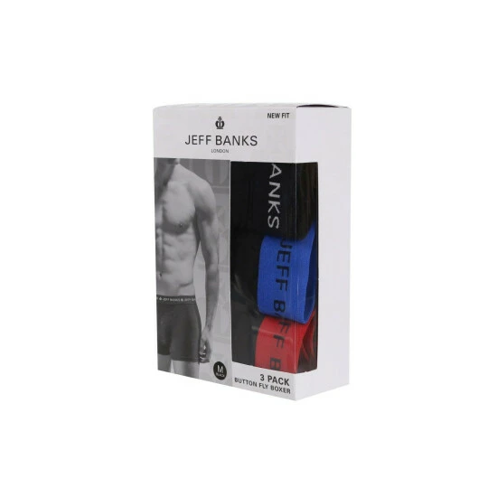 95% Cotton 5% Elastane. Flat overlock seams, right handed fly front secured by two Jeff Banks logo buttons, stylist repeat logo jacquard elasticated waistbands. Machine washable at 40°.