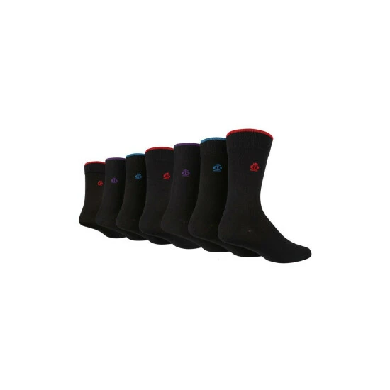 Wear a new pair every day with this multipack of socks, 7 pairs of socks in a classic plain design from London’s Jeff Banks brand. These socks are softly knitted in a fine cotton rich blend for easy-going comfort, each finished with Jeff Banks’ signature crown insignias.