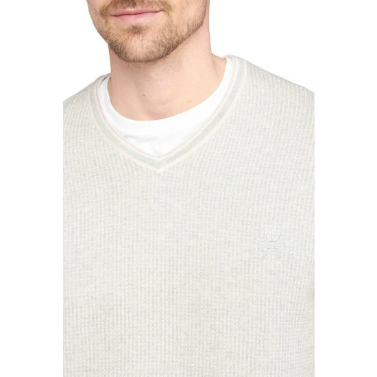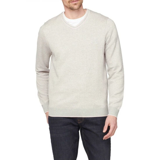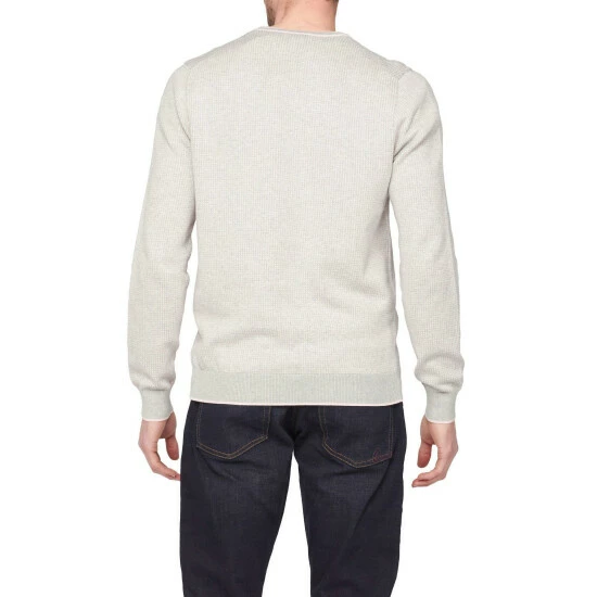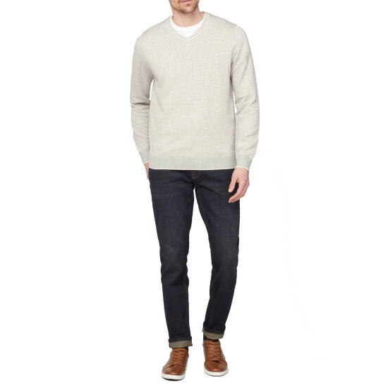 Cotton basket stitch tipped V-neck jumper from Jeff Banks. Carefully crafted, this basket stitch V-neck jumper features a unique stitch detailing in a contemporary grey and pink colourway, finished with Jeff Banks signature embroidery to the chest. Pair with your favourite Jeff Banks jeans or trousers, perfect for weekend occasions or dressed-down office wear.