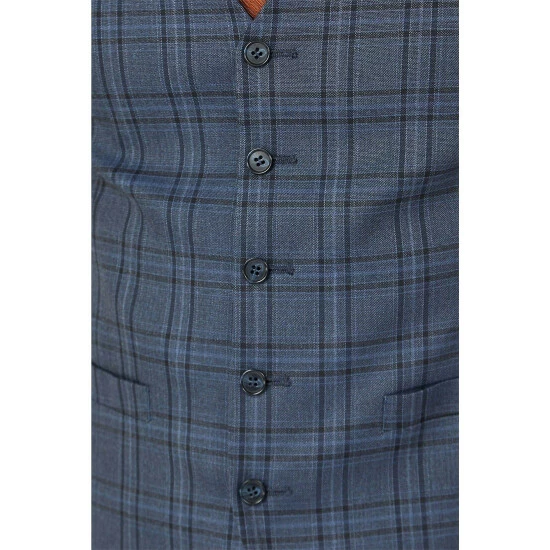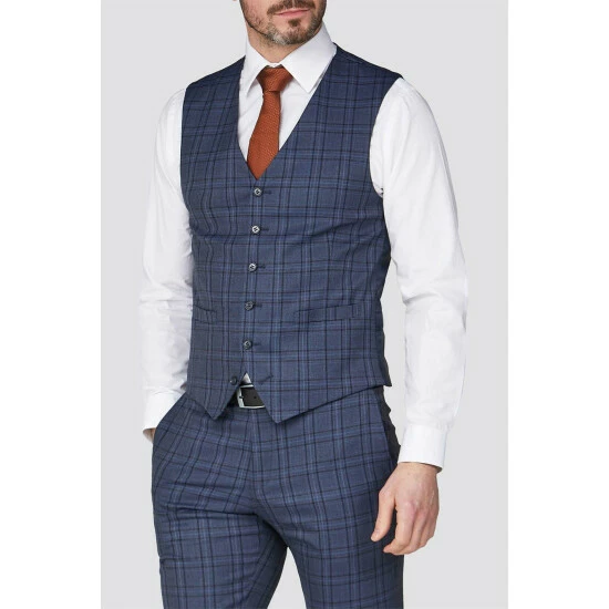 Bold Check Super Slim Fit Brit Waistcoat by Jeff Banks. The Brit collection has been designed with young and modern man in mind. The fit is super slim, meaning the suit is close fitting to the body, narrow through the chest and waist with a narrow trouser hem. This waistcoat is made from a polyester viscose blend cloth and has a 6 button front fastening with unfunctional bottom button.