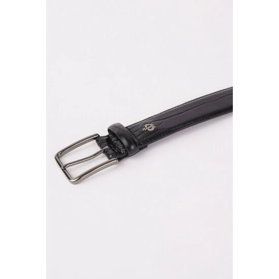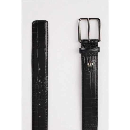 Croc Belt by Jeff Banks. A stylish belt perfect for teaming with your favourite trousers or jeans. Made from a croc textured bonded leather in black. Featuring an embossed Jeff Banks signature crown detail and a chrome silver buckle.