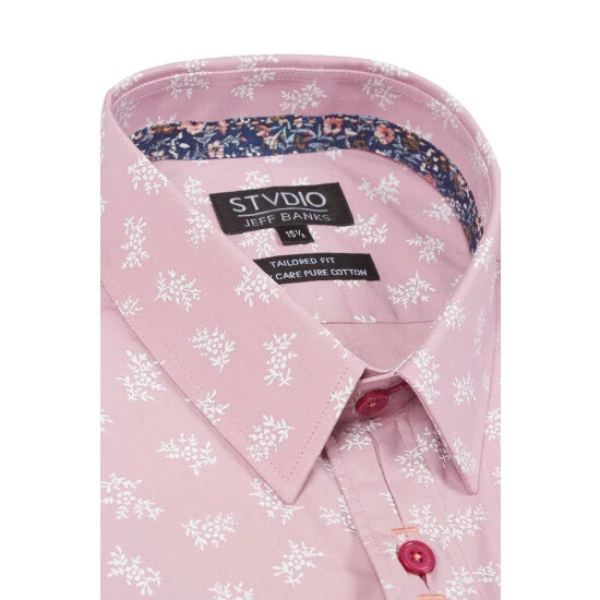 Cotton floral print formal shirt from Stvdio by Jeff Banks. Constructed in a tailored fit, this floral shirt in splashes of pink and white features contrasting trims, a classic button-up front and forward-point collar and single cuffs with stab-stitch detailing. The perfect piece for your office run or leisure – wear with your favourite Jeff Banks denim or smart suit trousers.