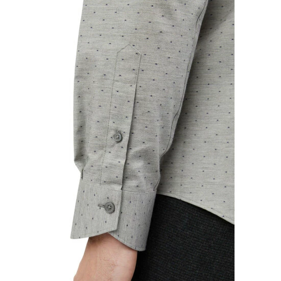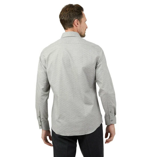 A smart, formal shirt for men by Jeff Banks Bespoke – with 100% cotton fabric and a cutaway collar in a classic men’s dobby shirt. A grey formal cotton shirt with a tailored fit, long sleeves, curved cuffs, with Jeff Banks branding and a versatile grey dobby print.Ideal for a night out or to add to your office wardrobe, this shirt is an instant classic.