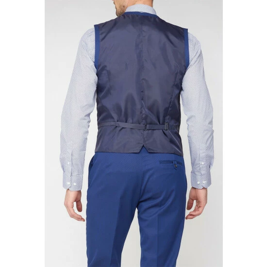 Jaquard Super Slim Fit Waistcoat By Studio Outlet. The Brit collection has been designed with young and modern man in mind. The fit is super slim, meaning the suit is close fitting to the body, narrow through the chest and waist with a narrow trouser hem. This waistcoat is made from a polyester viscose blend cloth and has a 6 button front fastening with unfunctional bottom button. Available as a 3 peice suit.