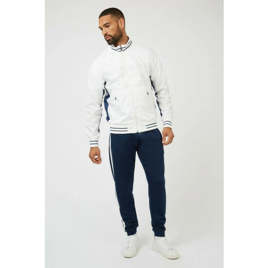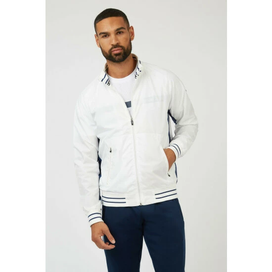 Jersey Lined Stripe Nylon Bomber Jacket by Jeff Banks. Jeff Banks craftsmanship encompasses both sartorial style and superb comfort. Crafted from a lightweight fabric, this bomber style jacket features a striped design. Styled with a full-front zip and side pockets, this piece features signature Jeff Banks zip pulls. A true piece of exemplary menswear from Jeff Banks.