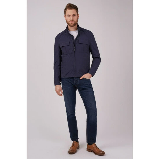 Lightweight Four Pocket Jacket by Jeff Banks. The Jeff Banks London smart casual jacket range is a tailored fit range with carefully considered design details in each garment. This lightweight four pocket jacket is the ultimate functional jacket. Features include two top flap pockets, two lower zip pockets, signature gunmetal zips and zip pulls, hem adjuster toggle, half lined, breathable mesh panels, internal zip pockets and signature stripe trim details.