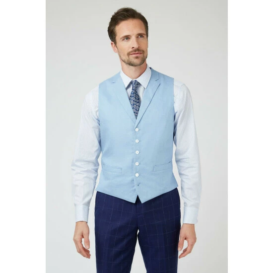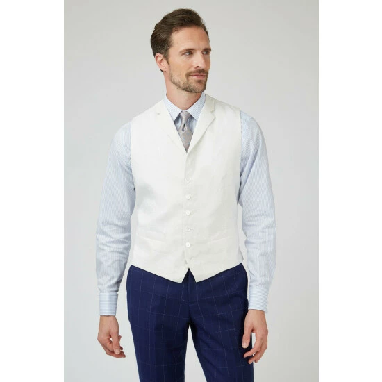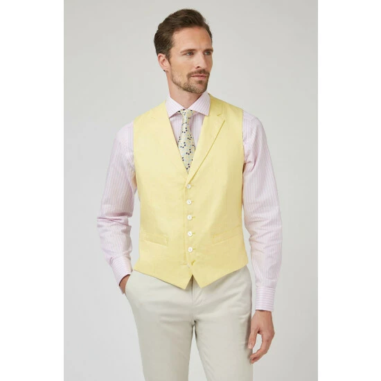 Linen Waistcoat by Jeff Banks. This 100% linen waistcoat by Jeff Banks is a wardrobe staple. Designed for maximum breathabiliy, with a lightweight feel, this waistcoat is perfect for mix and matching with your summer wardrobe.