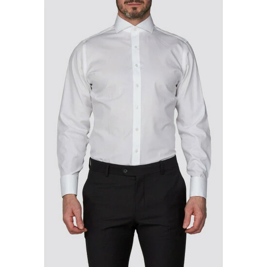 London Cutaway Shirt by Jeff Banks. The Jeff Banks white shirt collection has something for everyone, whether it be occasions, business or smart casual you can choose from a variety of collars, cuffs and fits. This style comes in a tailored fit, featuring a stylish half cutaway collar, single cuffs and 100% white cotton. Perfect for everyday wear. Wear yours with a pair of Jeff Banks jeans or trousers.