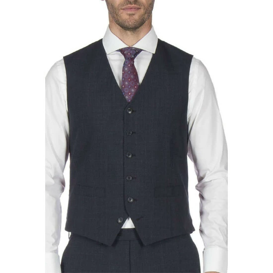 Overcheck Tailored Fit Waistcoat by Jeff Banks. Reflecting the ever changing mood of male fashion, the Stvdio Tailored by Jeff Banks collection is cut narrower through the chest, waist and seat making the suits youthful and sharp. This waistcoat is made from a wool blend cloth and has a 6 button front fastening with unfunctional bottom button.