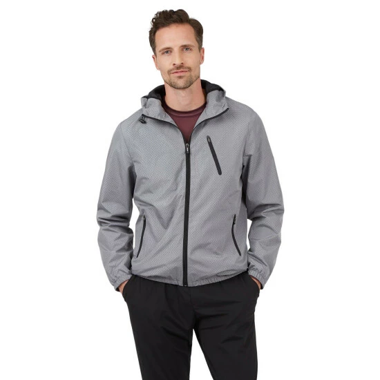 Perforated Cagoule by Jeff Banks. Athlectically inspired this perforated cagoule is a great breathable windcheater. Produced from High-tech recyclable polyester this modern piece of clothing can be worn as an outer layer or beneath heavier pieces. Technical waterproof zips make for high-spec functionality.