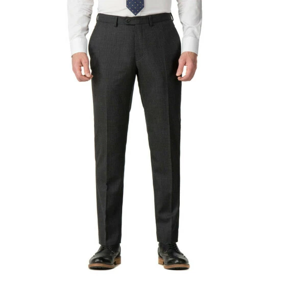 Semi Plain Trousers by Jeff Banks. The Jeff Banks Soho Tailoring collection draws its influence from the traditions of British tailoring with a modern twist. The fit of this trouser is based around a regular fit, the waist, seat and leg are slightly more tapered than a traditional fit. This trouser is made from a wool blend textured cloth and has a button through front opening and 1 back hip pocket.