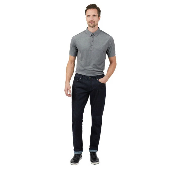 Jeff Banks presents the best in smart-casual dressing, with the classic short sleeve pique polo shirt for men in charcoal.This piece features a classic fit with a cutaway collar, a contrasting inside collar and contrasting striped under collar. Finished and branded with Jeff Banks signature stripe tape vents, chest embroidery and logo plate to the hem.
