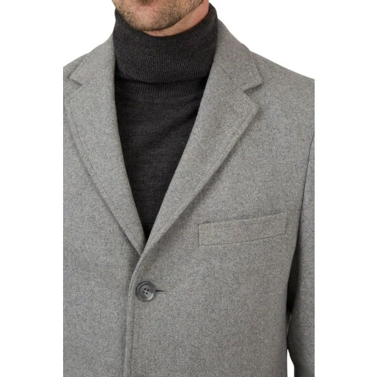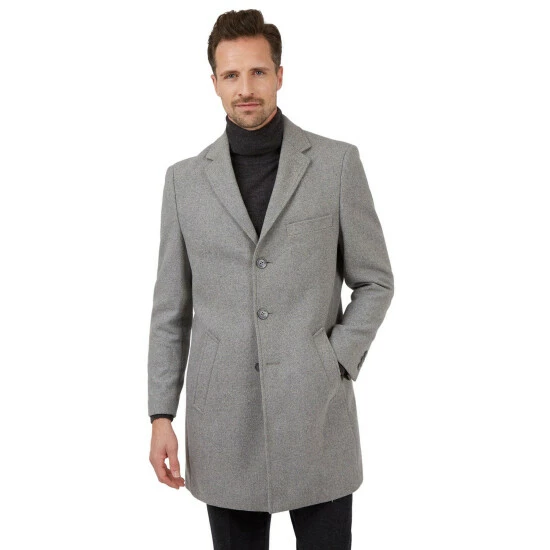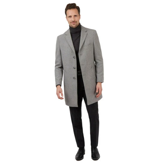 Single Breasted Coat by Jeff Banks. A stylish overcoat for men by Jeff Banks – a classic piece that’s reinvigorated for the colder months in a soft, comfortable wool blend. With notch lapels, a simple front button fastening, three external and two internal pockets, and a three-button sleeve fastening, this men’s overcoat balances British tailoring heritage with a modern theme style that’s bound to endure. A classic grey overcoat for men from Jeff Banks UK.