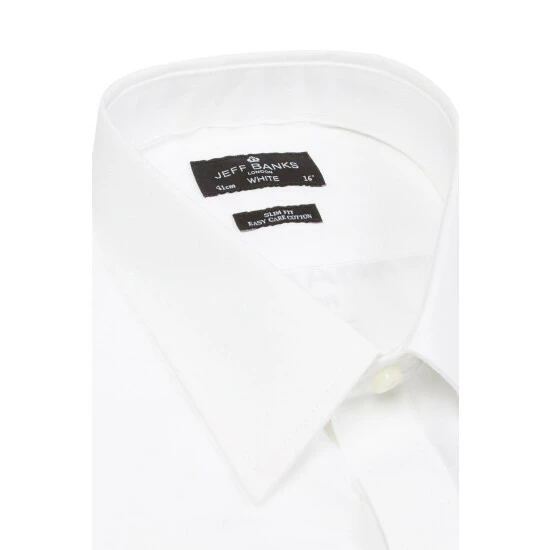 Single Cuff Forward Point Slim Cotton Shirt by Jeff Banks. This style comes in a slim fit and features a classic forward point collar with single cuffs, perfect for everyday wear. Wear yours with your favourite Jeff Banks denim for off-duty finish or your favourite Jeff Banks smart suit trousers.