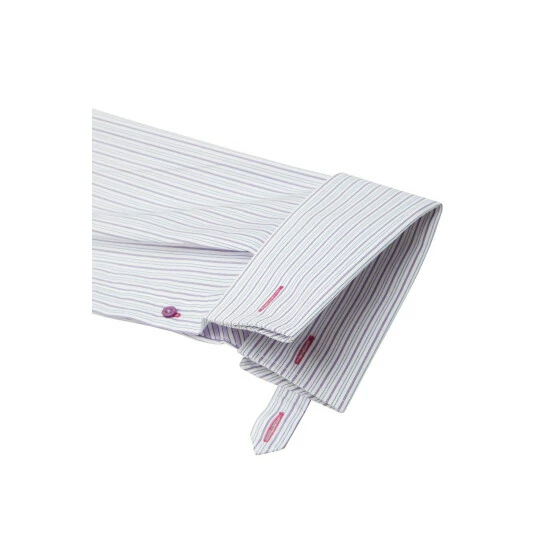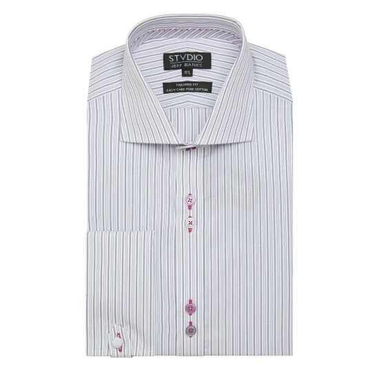 Jeff Banks Stvdio encompasses sartorial style with superb comfort.Constructed in a tailored fit, this purple striped shirt epitomises the classic stripe style, with signature double cuffs, a cutaway collar and contrasting fabric with Jeff Banks’s classic stab stitch detailing.The perfect piece for weddings, coastal trips and much more.