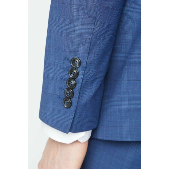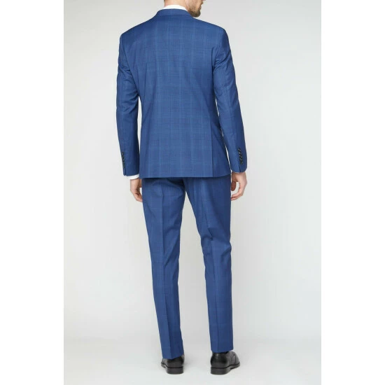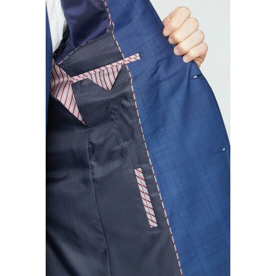 Travel Jacket by Jeff Banks. The Jeff Banks Travel suit collection is aimed at the average man with a leaning towards traditional tailoring and shaping. The shoulders are cut quite square and the waist, chest and seat measurement are slightly relaxed for a regular fit. This suit has been engineered to combine the highest performance in fabric and garment construction. The fabric has been finished using nano technology which gives stain resistance and water repellency. The elastane in the cloth gives improved wearer comfort and provides crease resistance so you can stay looking and feeling great all day. This Jeff Banks Travel suit jacket has a 2 button front with peak lapel. Available as a 3 piece suit.