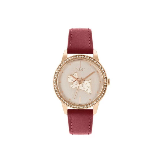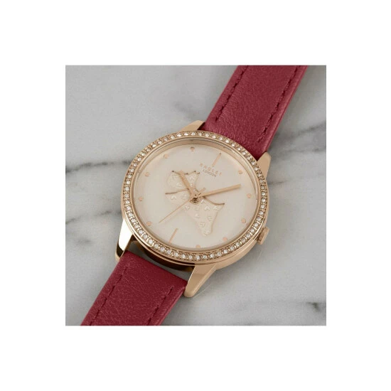 Primary Material : Base metal | Case depth approx : 7.00mm | Case width approx : 34.00mm | Case shape : Circle | Strap type : Leather strap | Strap colour : Red | Clasp type : Strap buckle | Dial colour : Gold | Glass : Mineral | Movement : Quartz | Movement Source : Japan | Water Resistance : 30 metres | Guarantee : 2 years