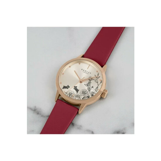 Battery Type : zinc air | Primary Material : Base metal | Case depth approx : 7.00mm | Case width approx : 31.00mm | Case shape : Circle | Strap type : Leather strap | Strap colour : Red | Clasp type : Strap buckle | Dial colour : Cream | Glass : Mineral | Movement : Quartz | Movement Source : Japan | Water Resistance : 30 metres | Guarantee : 2 years