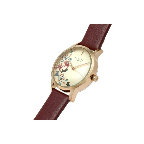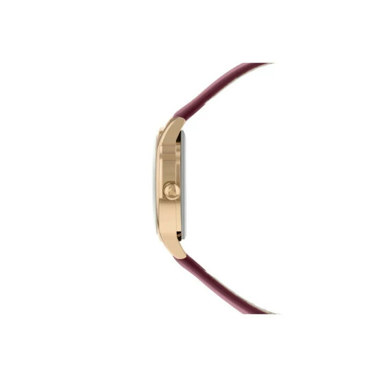 Battery Type : zinc air | Primary Material : Base metal | Case depth approx : 7.00mm | Case width approx : 31.00mm | Case shape : Circle | Strap type : Leather strap | Strap colour : Burgundy | Clasp type : Strap buckle | Dial colour : Rose | Glass : Mineral | Movement : Quartz | Movement Source : Japan | Water Resistance : 30 metres | Guarantee : 2 years