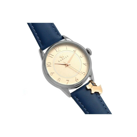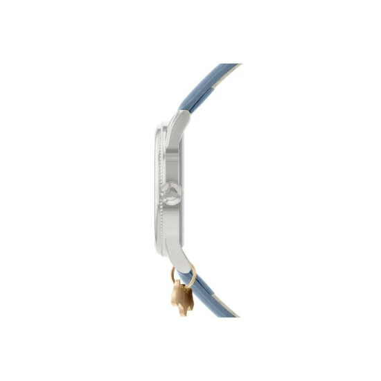Primary Material : Base metal | Case depth approx : 7.00mm | Case width approx : 35.00mm | Case shape : Circle | Strap type : Leather strap | Strap colour : Blue | Clasp type : Strap buckle | Dial colour : Gold | Glass : Mineral | Movement : Quartz | Water Resistance : 30 metres | Guarantee : 24 Months