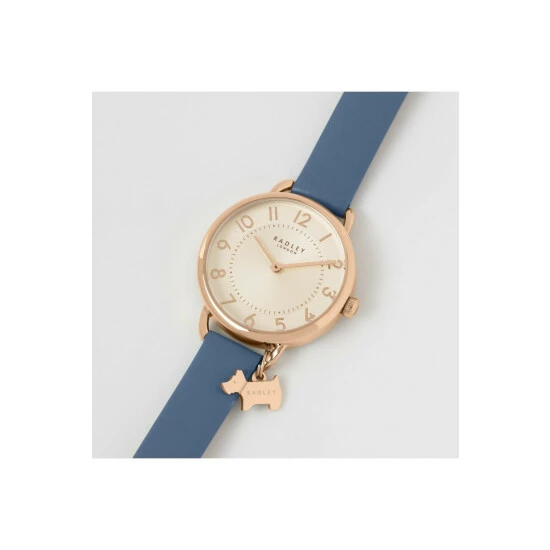 Primary Material : Base metal | Case depth approx : 7.00mm | Case width approx : 32.00mm | Case shape : Circle | Strap type : Leather strap | Strap colour : Blue | Clasp type : Strap buckle | Dial colour : Gold | Glass : Mineral | Movement : Quartz | Movement Source : Swiss | Water Resistance : 30 metres | Guarantee : 2 Year