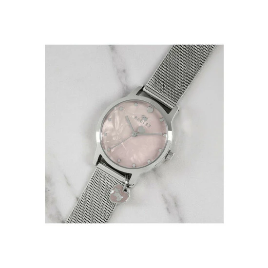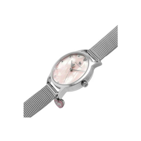 Primary Material : Base metal | Case width approx : 31.00mm | Case shape : Circle | Strap type : Mesh Bracelet | Strap colour : Silver | Clasp type : Sliding buckle | Dial colour : Pink | Glass : Mineral | Movement : Quartz | Movement Source : Japan | Water Resistance : 30 metres | Guarantee : 2 years