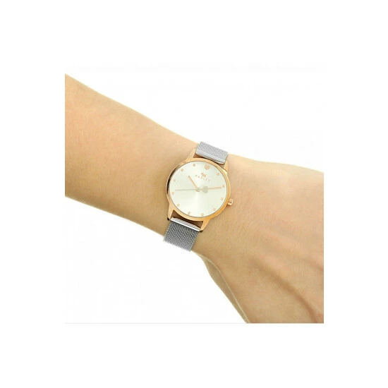Primary Material : Plated Stainless Steel | Case depth approx : 6.00mm | Case width approx : 32.00mm | Case shape : Circle | Strap type : Mesh Bracelet | Strap colour : Silver | Clasp type : Sliding buckle | Dial colour : White | Glass : Mineral | Movement : Quartz | Movement Source : Japan | Water Resistance : 30 metres | Guarantee : 2 years