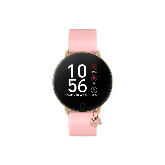 Smart Watch Type : Smart Touch | Heart Rate Monitoring | Step Counter | Sleep Tracker | Processor / CPU : PAR2860QN | RAM : 32KB RAM 512KB ROM | Primary Material : Aluminium | Case depth approx : 10.00mm | Case width approx : 42.00mm | Case shape : Circle | Strap type : Rubber Strap | Strap colour : Pink | Dial colour : Black | Glass : Mineral | Water Resistance : None | Guarantee : 1 Year