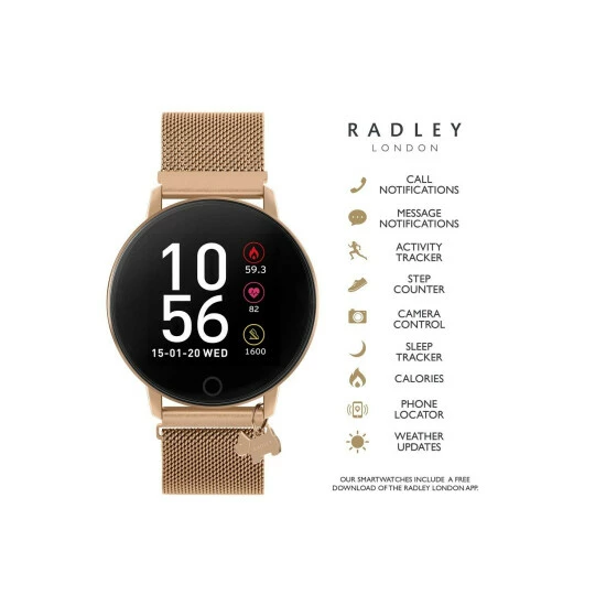 Smart Watch Type : Smart Touch | Heart Rate Monitoring | Step Counter | Sleep Tracker | Processor / CPU : PAR2860QN | RAM : 32KB RAM 512KB ROM | Primary Material : Aluminium | Case depth approx : 10.00mm | Case width approx : 42.00mm | Case shape : Circle | Strap type : Mesh Bracelet | Strap colour : Two-Tone Rose | Dial colour : Black | Glass : Mineral | Water Resistance : None | Guarantee : 1 Year